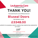 Bluseal raise £3348 for Leukaemia Care.