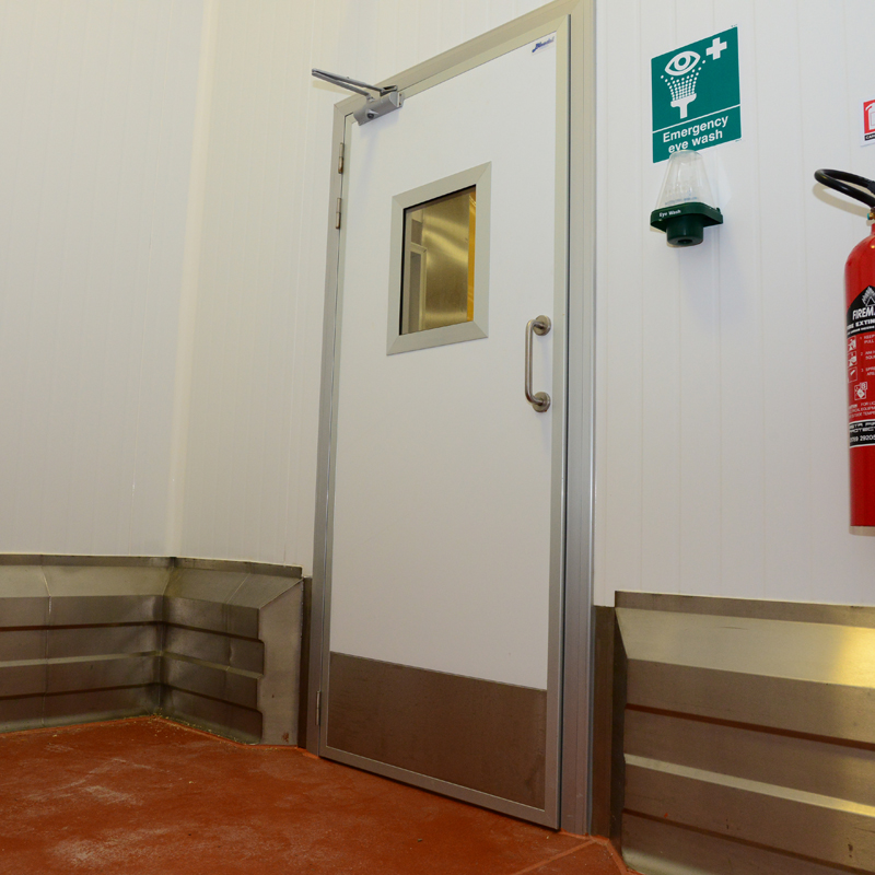 - No visible fixings to the leaf or the frame, essential in a hygienic environment.